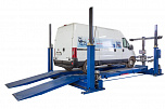 Подъемник четырехстоечный, электромеханический, платформенный. Предназначен для установки тест системы "сход-развал". Хорошо подходит для длинобазных автомобилей. По отдельному заказу подъёмники могут быть укомплектованы тележкой с домкратом для вывешивания передней или задней оси автомобиля. Подъемник комплектуется микропроцессорной системой синхронизации подъёма-опускания платформ.