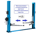 г/п. - 4 т. Для подъема легковых автомобилей всех моделей и марок при их техническом обслуживании и ремонте. Максимальное расстояние между подхватами: 2550 мм. Высота подъема лап (с подхватами): 1800 (1990) мм Длина задних лап: 780-1200 мм. Длина передних лап: 780-1200 мм. Толщина металла в стойках - 5,2 мм, толщина тросов синхронизации - 9 мм. Вес: 630 кг.