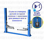Гарантия 36 мес – наш монтаж, 24 мес – самостоятельная установка. Срок эксплуатации – не ограничен. Съем со стопоров ручкой на одной колонне (экономия времени). Модернизированные каретки. Увеличенная толщина гребенки стопора, позволяет без проскальзываний ставить подъемник на стопора, не опасаясь падений авто. Поднимает ВСЁ – от «Оки» до «LC200» (h=120÷1900 мм). Между колоннами 2850 мм. Длина (min-max) лапа короткая 750-1080 мм; Длина (min-max) лапа прямая длинная 900-1400 мм. г/п 4 тонны.