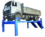 г/п. 10 тонн. Четырехстоечный. Электромеханический. Для ремонта грузовых автомобилей отечественного и импортного производства и автобусов на любой ровной площадке. Привод червячный редуктор, с концевыми выключателями нажимного действия, ограничивающими ход каретки. По отдельному заказу комплектуется установочными рамами. Поставляется в 2 вариантах Стандарт (в помещение) и ТЗ (Для эксплуатации на улице).