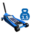 Гарантия 1 год. Профессиональный. Для интенсивной эксплуатации. Подкатной. Низкопрофильный. Двухштоковый механизм. Усиленная конструкция. Быстрый подъем. Имеет повышенную износостойкость. Поворотная ручка, тавотница, лоток для хранения и резиновая накладка на чашку домкрата в комплекте. Г/п.— 3,5 тонны с усиленными ребрами жесткости. Высота подъема мин / макс - 95-552 мм. Вес: 46 кг.