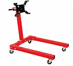 Оснащен редуктором для легкого вращения одной рукой. Редуктор позволяет поворачивать вывешенный двигатель под углом 360°. Надежная сварная конструкция и 4 поворотных колеса обеспечивают маневренность и устойчивость к перевороту. В комплекте поддон для сбора отработанного масла. С 4-мя регулируемыми кронштейнами для удобства вывешивания и обслуживания ДВС легковых и легких грузовиков. Для сборки/разборки моторов V6 и V8. г/п: 500 кг.
