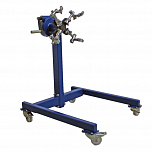 Стенд для сборки и разборки цилиндропоршневой группы 2-х и 4-х цилиндровых ДВС без навесного оборудования г/п. до 453 кг. Вращение двигателя 360°. 4 регулируемых кронштейна для удобства вывешивания и обслуживания ДВС легковых авто. оснащен Т - образной рамой с поперечной и 4-мя колесами.