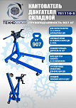 Складной. Для сборки / разборки цилиндропоршневой группы 6-х цилиндровых ДВС с навесным оборудованием и 8 цилиндровых без навесного оборудования г/п. до 907 кг. Позволяет вращать двигатель на 360°. С 4-мя регулируемыми кронштейнами для удобства вывешивания и обслуживания ДВС легковых авто. Оснащен П - образной рамой с 6 поворотными колесами.