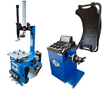 Комплект из полуавтоматического шиномонтажного стенда TS-21, для колёс 99% автопарка России. Для дисков: 11÷20”. В комплекте: пистолет для подкачки шин + монтажка + пластиковые накладки на зажимные кулачки + регулятор давления с влагоотделителем и манометром. + TS-550 Балансировочный станок (с лазером) Для дисков: 10÷24” (254-609 мм). В комплекте: кожух с автозапуском + клещи + кронциркуль + быстрозажимная гайка + набор конусов.