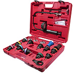 Изготовлен из прочного и износостойкого пластика (Nylon 66). Для тестирования охладительной системы на предмет утечек. В комплект входит ручной насос и поверочные крышки. Общее количество предметов: (в кейсе) 19 предметов.