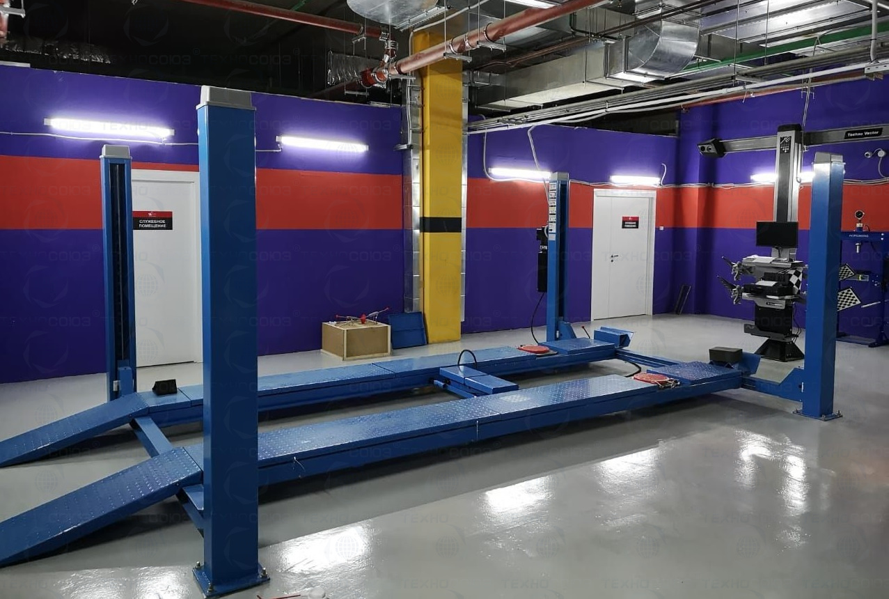 Четырехстоечный подъемник для сход-развала легковых авто, микроавтобусов, внедорожников, ГАЗЕЛЕЙ.
