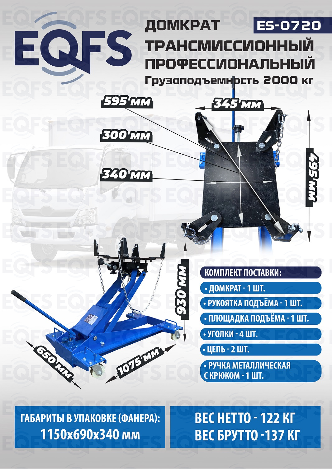 Особенности конструкции ES-0720 домкрат трансмиссионный 2 тонны :