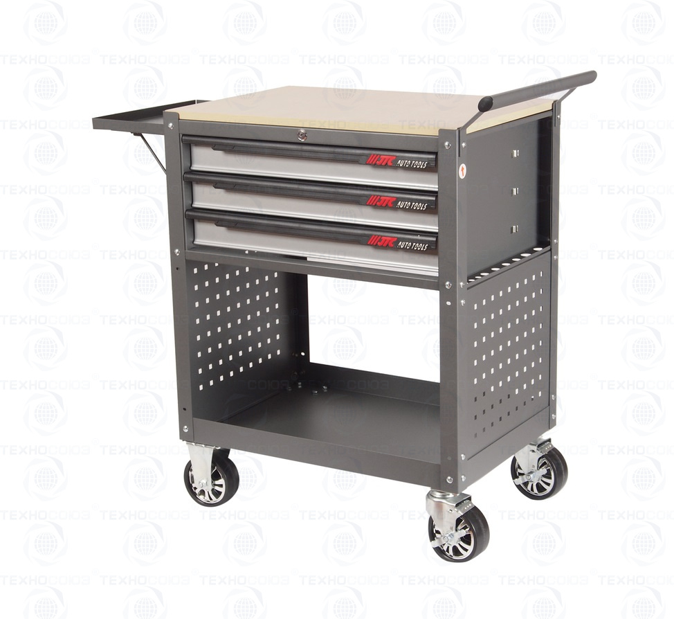 - Перфорированные внутренние стенки боковых ящиков с квадратными отверстиями предоставляют возможность разместить дополнительные аксессуары для хранения инструментов. Применяется с серией подвесных приспособлений JTC-3218.