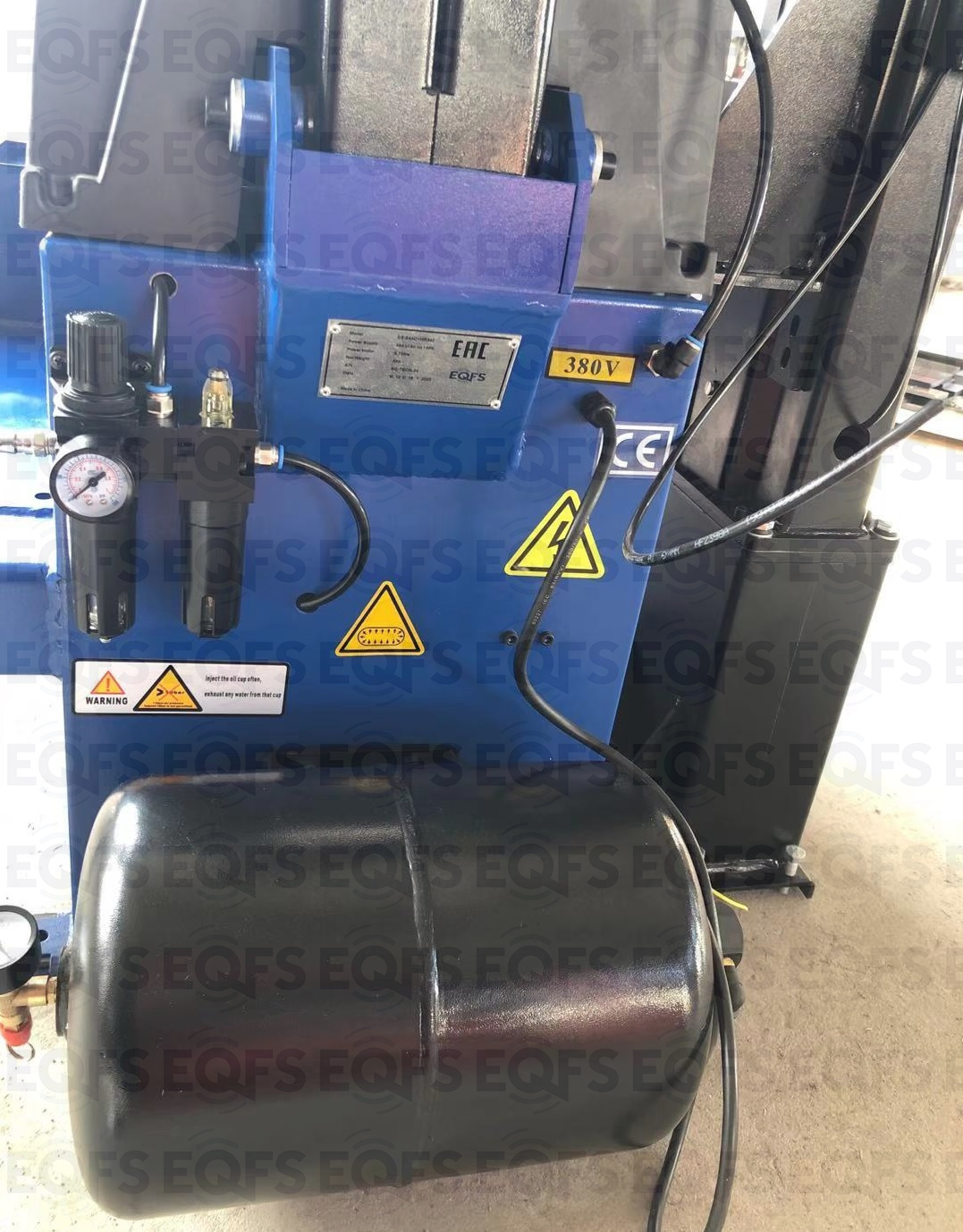 ES24AC+HR-360 Шиномонтажный станок. Автомат. Большой квадратный стол. Для колес с размером от 10-24 дюйма. Усилие отжима увеличено до 2700кг. В комплекте взрывная подкачка + третья рука для работы с низкопрофильными шинами и RanFlat + встроенный бустер  24 литра (взрывная подкачка) + пистолет для подкачки шин + монтажка + регулятор давления с влагоотделителем и манометром.