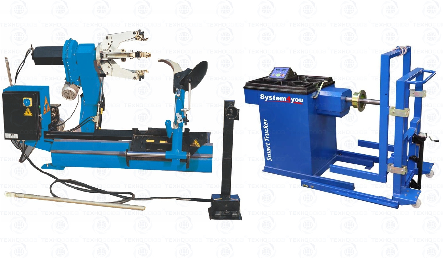 Комплект из полуавтоматического грузового шиномонтажного станка TS-26D. Отказов и рекламаций нет!!!  Диски сталь, AL, с кольцами и без, 14÷26” с адаптерами 14÷42”(опция), Колесо макс. Ø1600 ширина 780мм, до 500кг. Моторы 1,5 + 2,2кВт. Гидравлика – немецкая «BUCHER HIDRAULICS». Гарантия до 18мес. + Грузовой балансировочный станок Smart Trucker подходит для балансировки колес грузовых и легковых автомобилей с диаметром диска от 9 до 28 дюймов (при ручном вводе до 30 дюймов) и шириной от 3 до 20 дюймов. Два режима работы. Настройка «нуля». Программа автоматической калибровки. Программа самодиагностики (режим ТЕСТ). В стандартную комплектацию входит подкатная тележка с ручным подъемником.