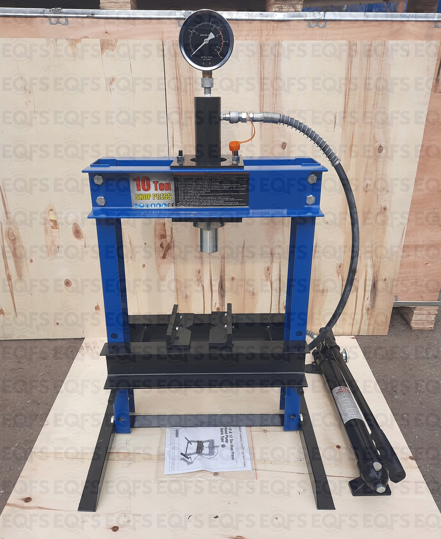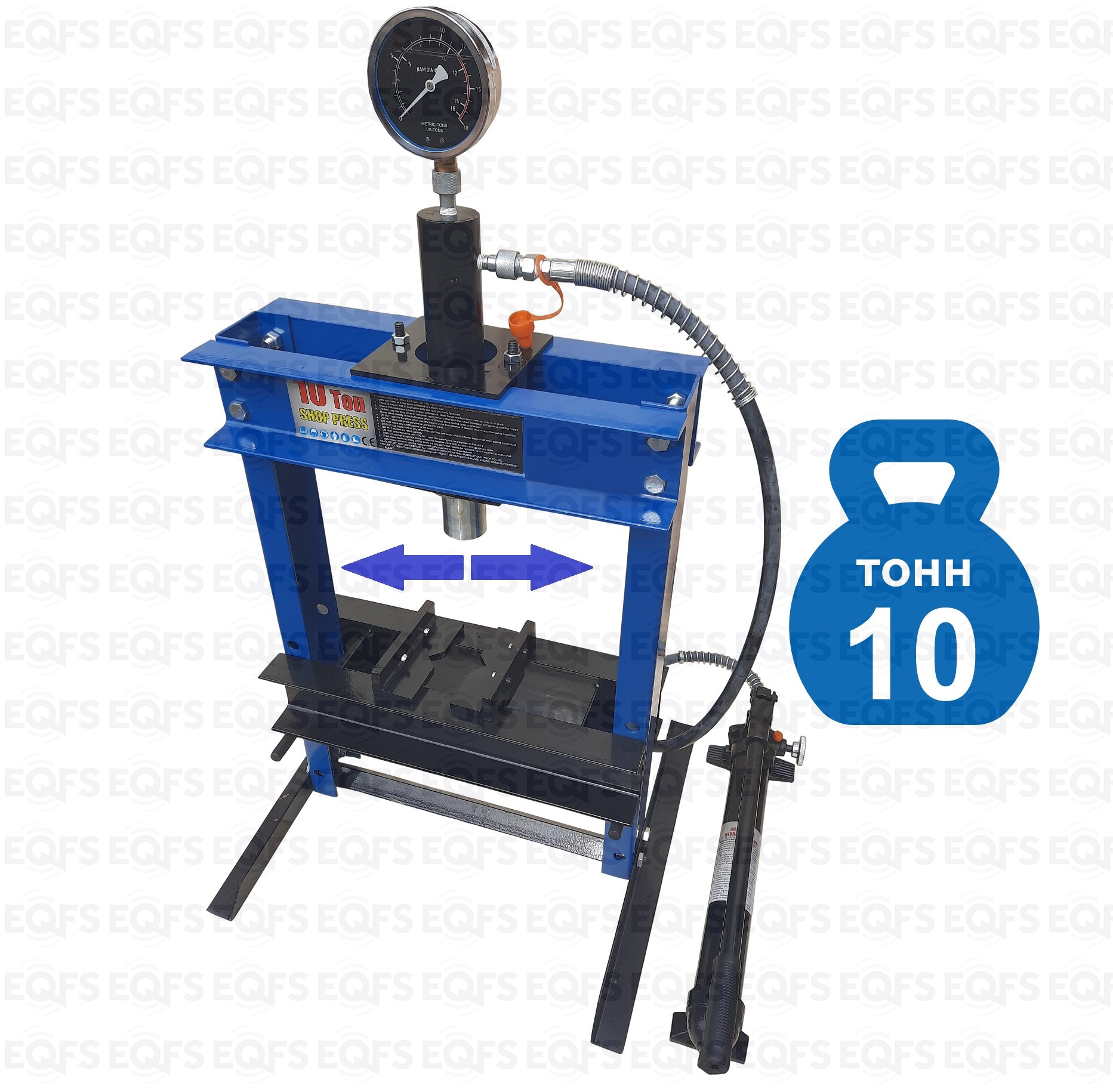Настольный. Малый гидравлический, ручной, сборно-разборный. Гидроцилиндр с пуансоном имеет возможность перемещения по всей ширине станины. Контроль усилия – визуально по шкале манометра. Предназначен для запрессовки деталей машин в автосервисе, мастерских по ремонту лодочных моторов, велосипедов и т.п. Цвет синий. Усилие 10 тонн. Для запрессовки подшипников, деталей машин, втулок и т.п. Интервал пуансона 135 мм. Рабочее окно: 400 x 350 мм. Идеален для гаража.