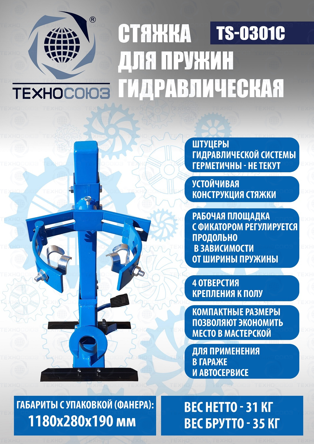 Профессиональная. Напольная с ножным приводом. Гидравлическая с усилием 1000 кг. Экономит время. Облегчает монтаж / демонтаж пружин со стойки легковых автомобилей. Ход поршня 220 мм. Диаметр пружины 125-165 мм.