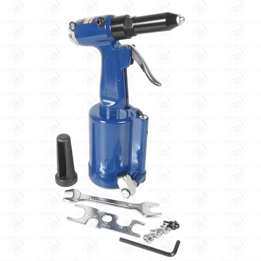 Пневматический заклепочник применяется для установки вытяжных заклепок диаметром 2,4 мм, 3,2 мм, 4,0мм, 4,8мм, 6,4 мм из всех сплавов и вытяжных заклепок из алюминия. Технические характеристики Мощность: 1626 Н·м. Шток: 16 мм. Подача давления: 4-6.8 атм. Расход воздуха: 5 л/заклепку. Размеры алюминиевых заклепок: 2.4, 3.2, 4.0, 4.8, 6.4. Минимальный размер шланга: 3/8". Размер воздушного штуцера: 1/4". Вибрация: 85 DBA. Гидравлическое масло: ISO VG 68.